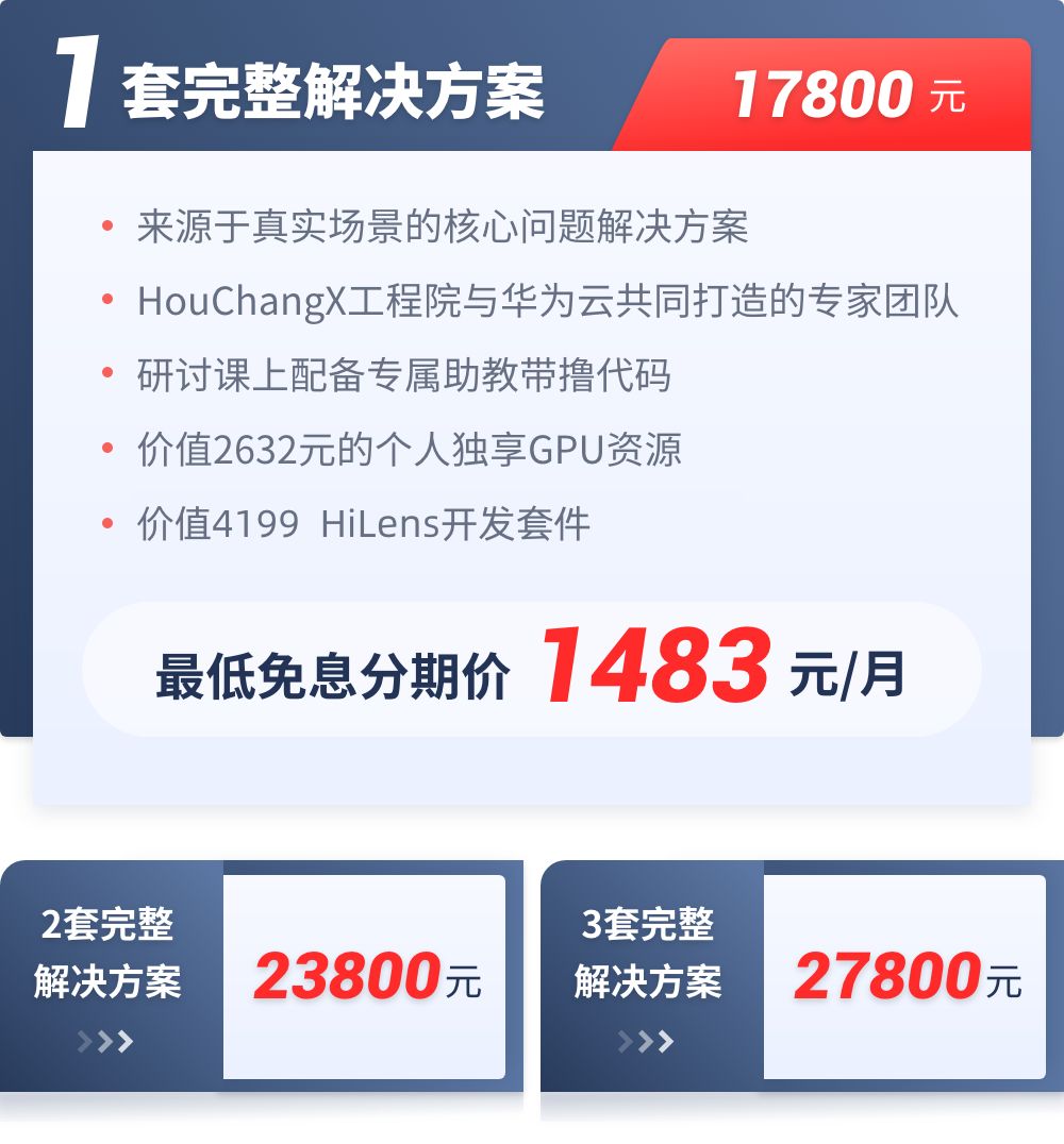 为保证学员拥有最良好的学习环境,报名任意1个解决方案,我们还会赠送价值4199元的Hilens开发套件,实现真正的落地应用。