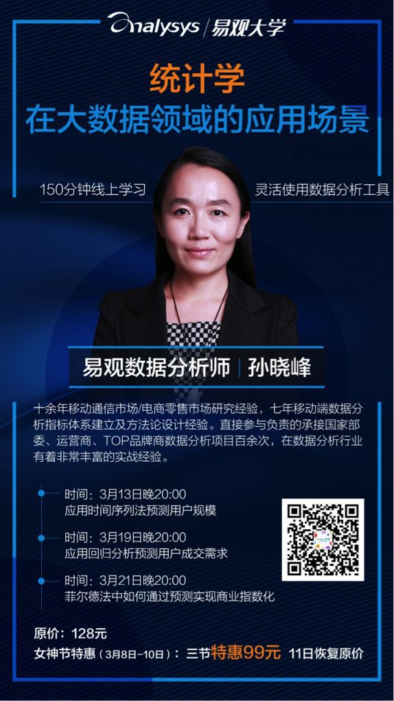 本次推出的课程中,就包含了统计学常见的时间序列分析、回归分析以及定性分析等理论在大数据领域的应用。同时,还将结合经典的案例分析,在方法论和案例的双重加持下,帮助学员在日常的工作中,能结合这些理论灵活使用数据分析工具。