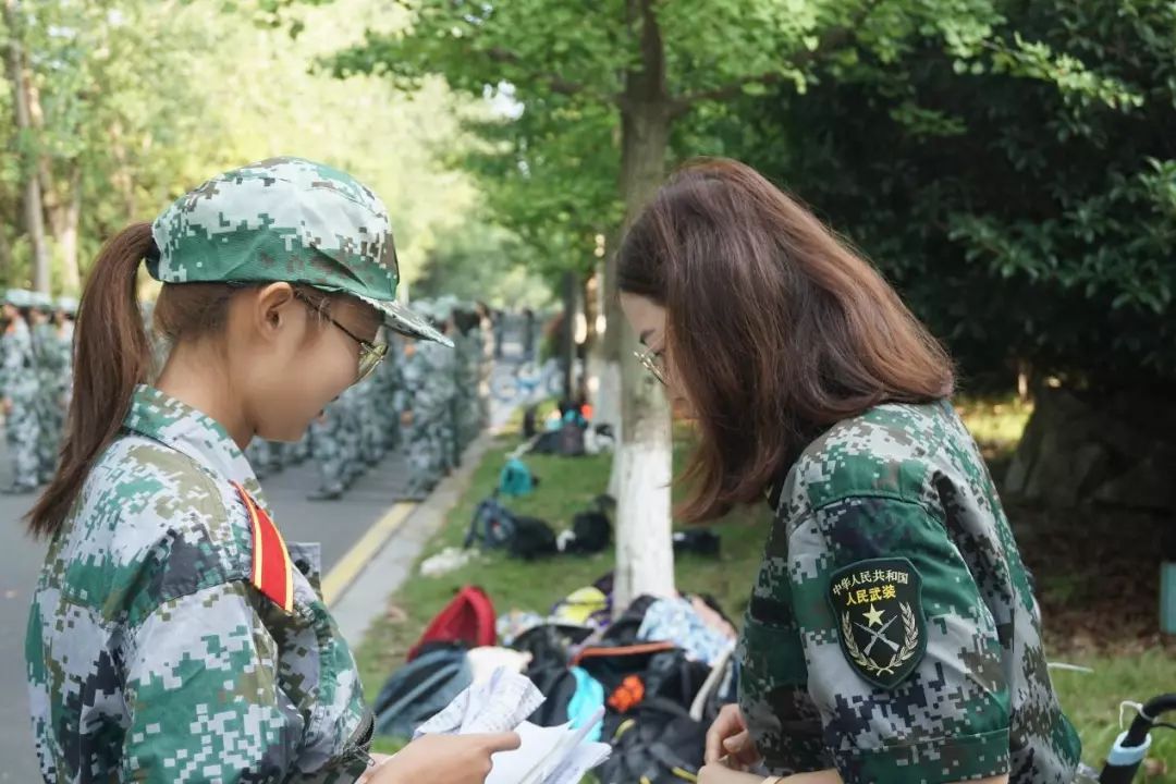其实我觉得作为军训指导员,我最需要做的就是对军训中的每一个孩子都要保障她们平安圆满地完成军训任务。像刚刚的那位同学,因为有一些手续要办所以军训迟到了一点,她也是请过假的。我们连队又因为特殊原因变化了军训场地,我就要先把她送到教官那里,这样我也才能放心。我是尽量每件事都亲力亲为的,同学们和我关系也很好,一开始大家都叫我施老师,逐渐地都开始叫我迎盈姐,我每次听到都还挺开心的。