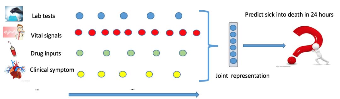 ICU病房的医师在重症病人护理的过程中,要综合大规模的数据,做出一系列临床决策。这些数据源包括生理指标,化验结果,用药记录,重要症状等。随着医疗信息化的发展,这些数据都被记录在了电子病历记录中。