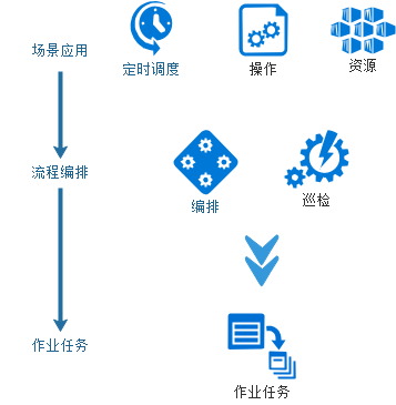 平台的运维基本单位是“操作”,通过定时调度+资源+操作可以组合成不同的巡检或者流程编排。巡检和编排最后通过解析转化为具体的作业任务。作业任务由agent或者代理agent解析后执行。