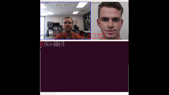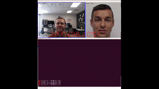 首先是正向测试(positive test),屏幕右侧为 Steve 的真实、非生成图像。系统在对照 Sam 时是不匹配的,对照 Steve 自己时匹配度 100%。这说明系统可以正确地识别出 Steve 自己。