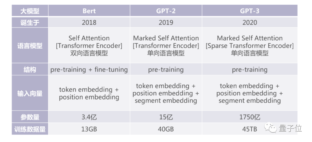2019年,出现GPT-2模型,参数量比Bert多五倍,达到15亿,这里训练数据又多了三倍,达到40GB。到了2020年,自然语言又有了大发展,提出了GPT-3模型,含有1750亿个参数,数量多了100倍,训练数据翻了1000倍到45TB。当再使用这些模型去解传统的自然语言问题时,使用非常少的数据模型就能够快速适应到问题所对应的具体场景。