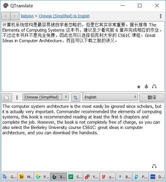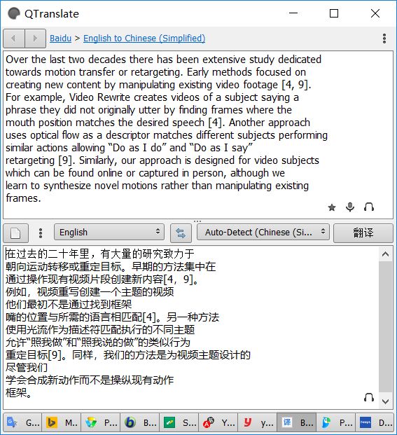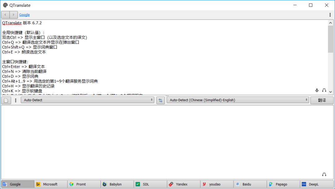 由于 QTranslate 在线翻译需要 Internet 连接,在不同在线翻译引擎切换时,估计需要至少 10 秒以上的等待。