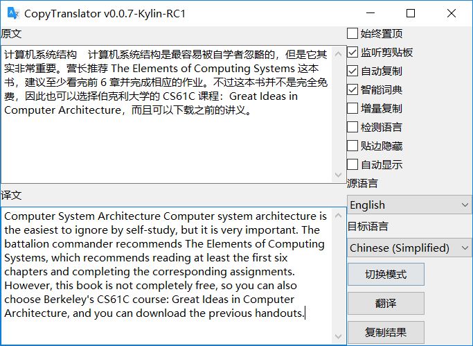 近日,营长发现一款体验“十分优秀”的复制即翻译的外文辅助阅读翻译解决方案——CopyTranslator,它很好地解决了PDF文本换行的麻烦,并借助谷歌翻译API支持,在速度和质量上都有了很好的满足。堪称人类智慧的结晶!为不失公允,特与另款获得不少点赞的 Windows 翻译软件 Qtranslate 进行对比。