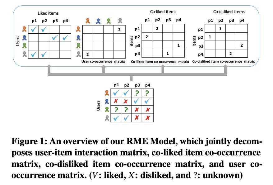 本文是伍斯特理工学院和宾夕法尼亚州立大学发表于 CIKM 2018 的工作,论文提出了一个基于 RME(Regularized Multi-Embedding)的推荐模型,不再基于用户的共同喜好进行物品推荐,而是创新地提出刻画物品对共同被讨厌的特征,进而避免向用户推荐其讨厌的物品。