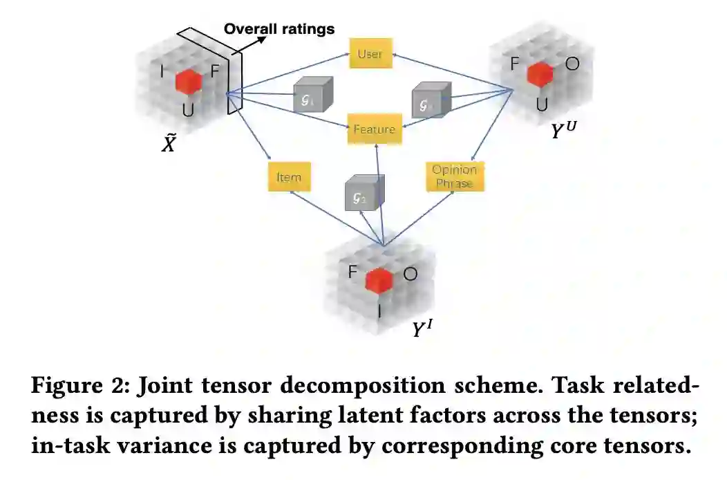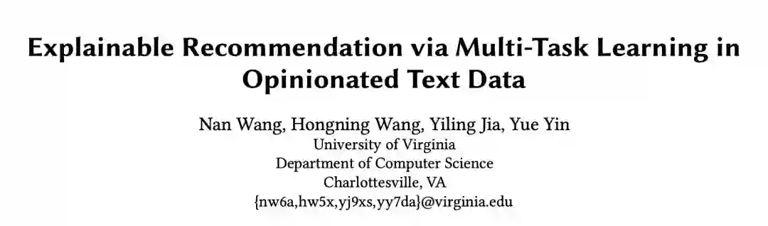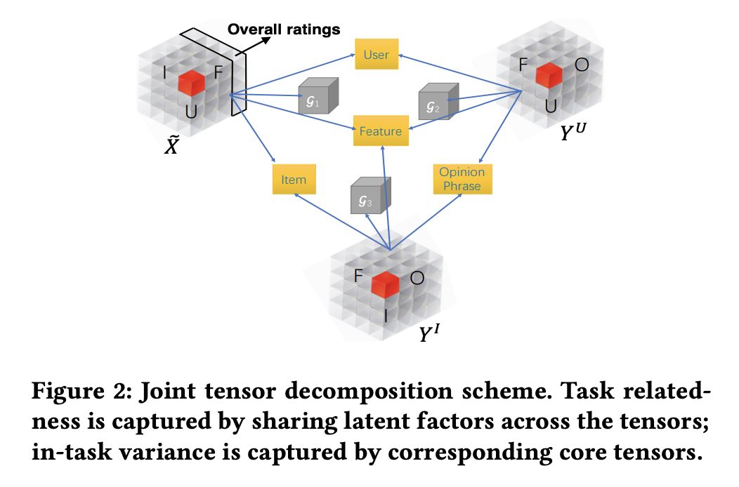 本文是上海交大和弗吉尼亚大学发表于 SIGIR 2018 的工作。论文提出了一个用于可解释推荐任务的多任务学习方法,通过联合张量分解将用户、产品、特征和观点短语映射到同一表示空间。