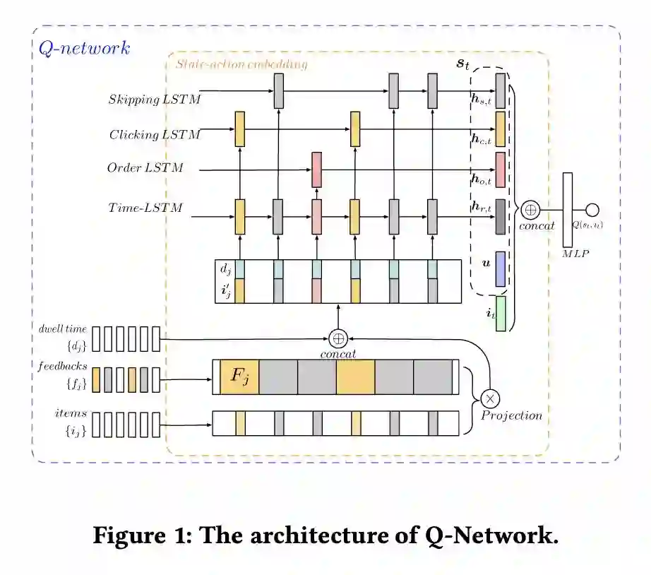 本文是清华大学和京东发表于 KDD 2019 的工作。论文针对利用强化学习解决推荐系统时存在用户行为难以建模的问题,提出了一种新的强化学习框架 FeedRec,包括两个网络:Q 网络利用层次化 LSTM 对复杂用户行为建模,S 网络用来模拟环境,辅助和稳定 Q 网络的训练。方法在合成数据和真实数据上进行了验证,取得了 SOTA 的结果。