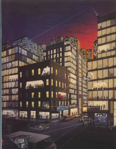 欧文·戴维斯发表于1987年1月OMNI杂志上的文章《赛博战争中的机器人战士冲突》,配有保罗·莱尔的这幅插画。