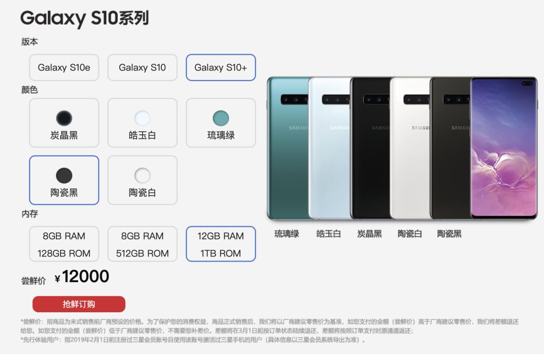 需要说明的是,先行者版本不代表 Galaxy S10 系列的最终国行价格,实际价格会在这个基础上有一定浮动(99.99% 低于先行者价格)。