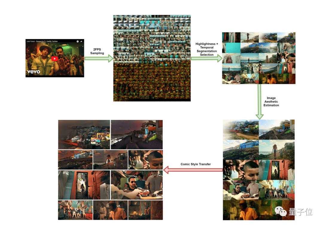 这基本上也呈现出了项目团队的大致思路:使用基于强化学习的关键帧提取算法,提取视频中有意义且有代表性的帧,然后对关键帧进行评估,确认主要的画面之后,再进行使用GAN进行风格迁移,形成漫画风格。