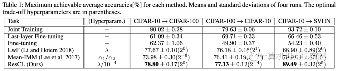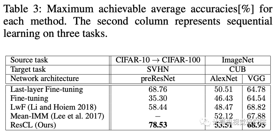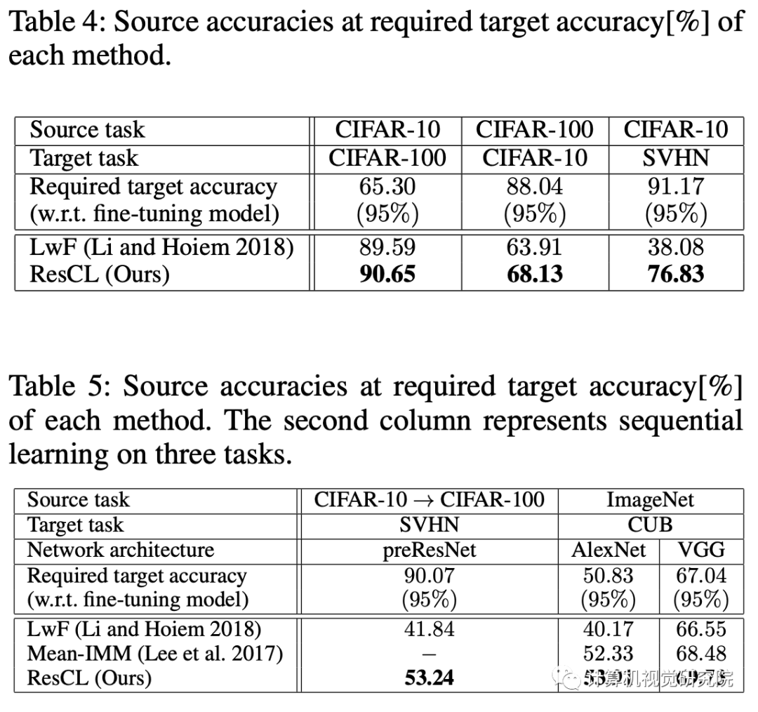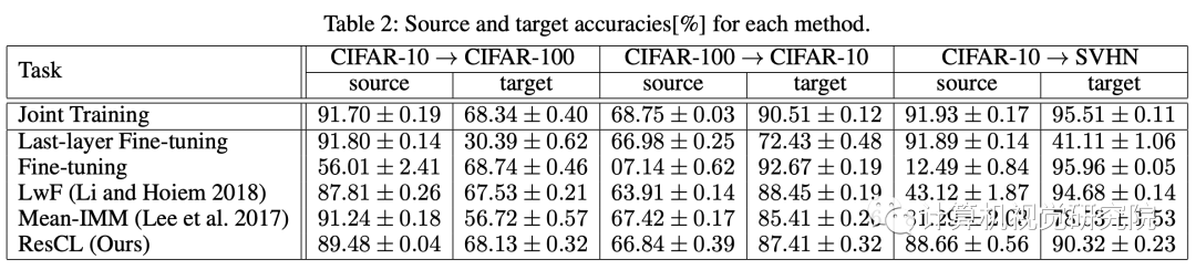 在ResCL框架中,Ws是源网络的权重,Wt是从原始网络中为目标任务进行微调的网络权重,此外,Wt还接受了训练,以完善其以便与Ws很好地结合起来,而Ws是固定的,以防止灾难性遗忘。 此外,还通过反向传播来学习组合参数,以最优地混合两个特征。 因此,组合网络中的可学习参数为Wt和α=(αs,αt)。