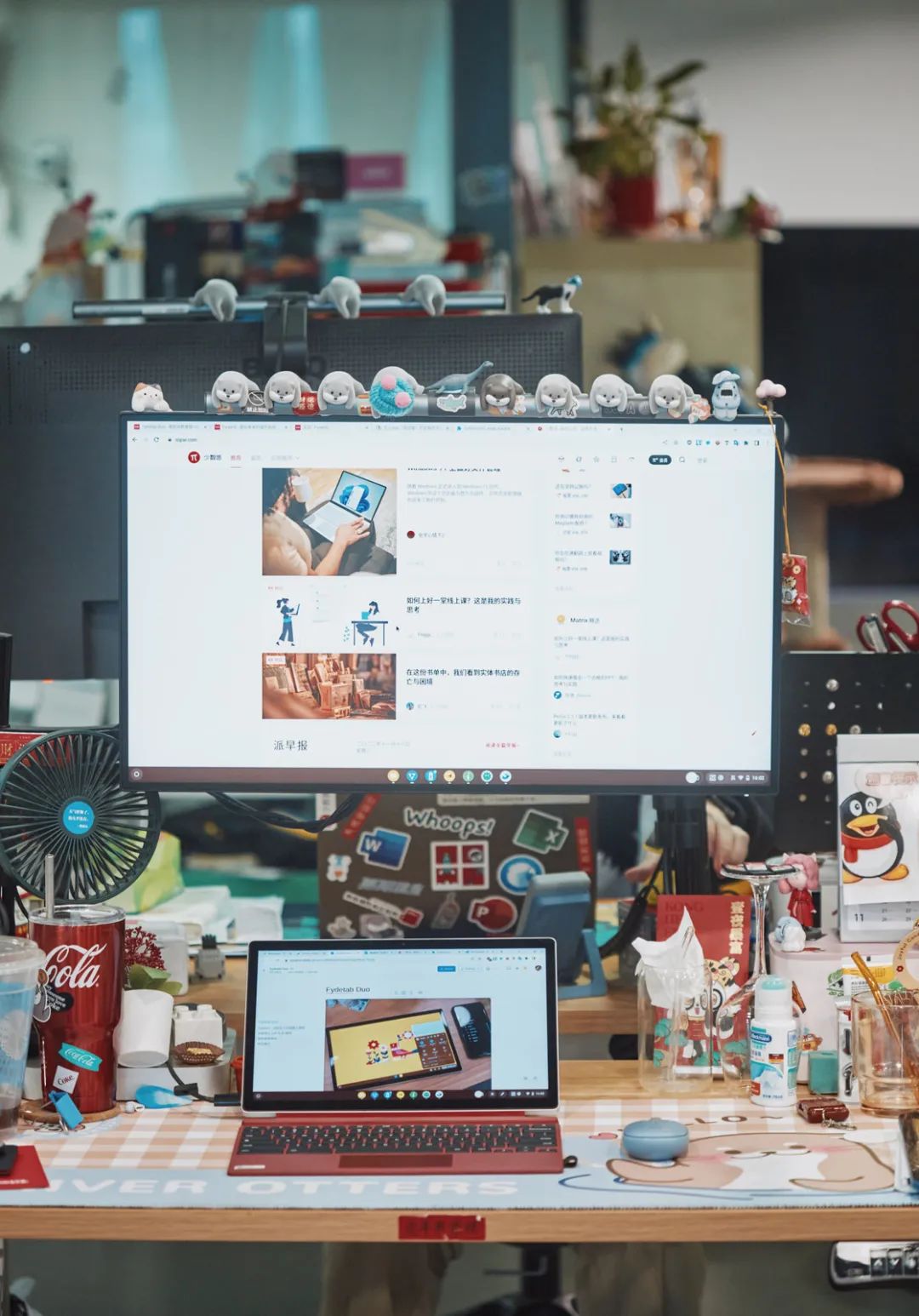 搭配上支架和键盘,支持应用分屏:对应的是工作外的所有需求,观看视频、长时间的网页浏览、IM 聊天等。