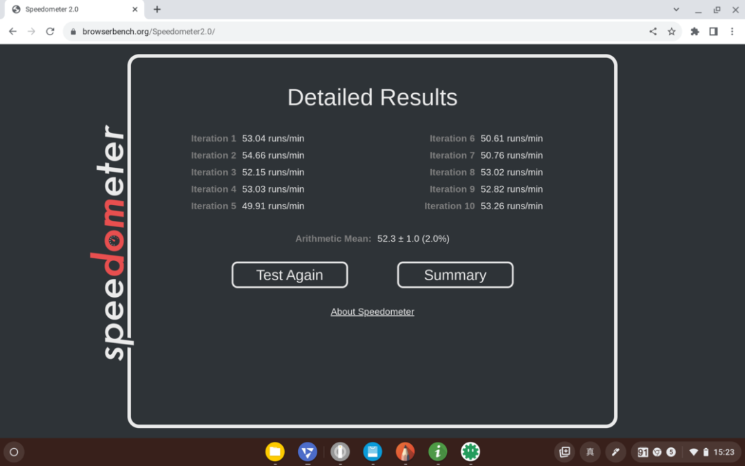 关掉所有浏览器拓展,跑个 Speedometer 2.0 看看,该项目主要是测试在浏览器中执行简单任务(如搜索)等的性能