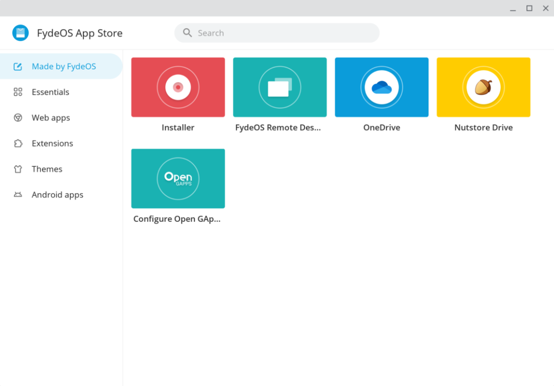 除此之外,FydeOS 还内置了一个应用商店来代替 Google 的 Chrome Web Store 和 Google Play Store,包括他们挑选过的一些经过测试、可在大屏上施展的 Android 应用,值得推荐的 Chrome 浏览器拓展、主题以及相关的网络应用,以及出自 FydeOS 团队的 OneDirve/坚果云应用供用户挂载云存储。这个应用商店对于发烧友来说似乎有些多余(当然逛逛并不会失去什么),对于普通用户来说绝对是进入系统后首先会打开的对象,算是撞入小众系统后的安心落地。这个应用商店也并非唯一选择,依然可以使用 Google 的 Web Store 获取最完整的拓展生态,或使用内置的 Open Gapps 工具打开 Play Store 生态的大门。