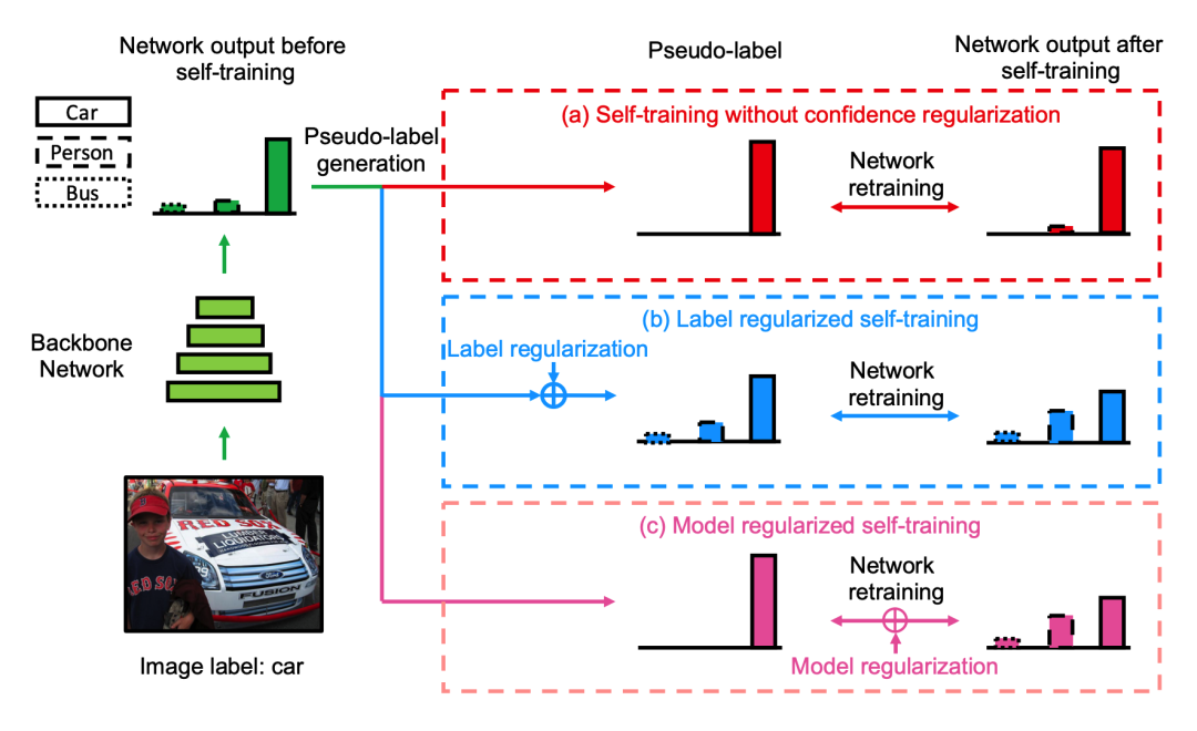 当然也可以将软标签与伪标签同时使用,如下图的思路。在图中照片的原始标签为car,但照片还有person的类别,如果直接使用硬标签进行训练,会带来一定的模型噪音。
