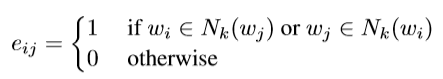 这里,Nk(w)表示K个最近邻居的集合,是通过计算词之间的word2vec嵌入的cosine的相似度。k是相邻参数的个数,试验中设置为8。图结构的参数用邻接矩阵A。