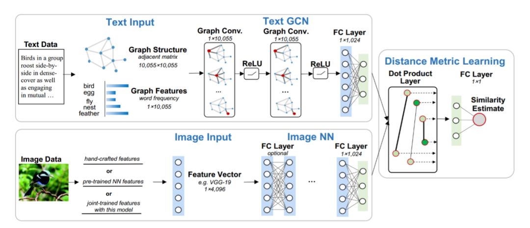 基于上述研究,为了获取文本词之间语义关系,作者采用图卷积(GCN)。基于GCN,作者提出了一个双路神经网络,被命名为 Graph-In-Network (GIN),文本建模路径中采用GCN;图像建模路径中采用卷积神经网络,并采用成对相似性损失函数。