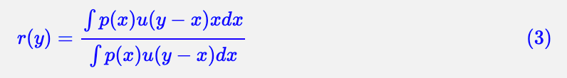 所以 ∫p(x)u(y−x)(r(y)−x)dx=0,即:
