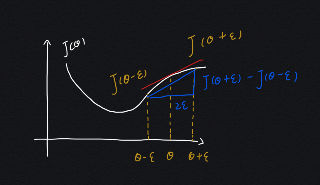 grad = (J(theta_plus) - J(theta_minu)) / (2 * epsilon)