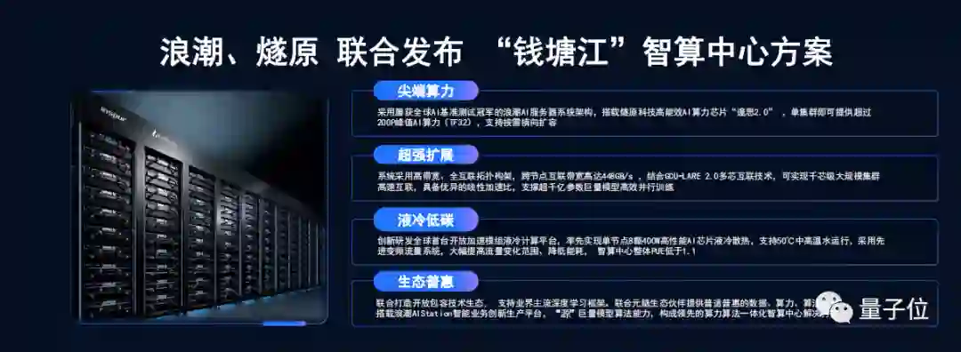 而且更进一步的,基于高能效AI算力芯片“邃思2.0”,燧原科技与浪潮集团,在今年3月份联合发布了“钱塘江”智算中心方案。