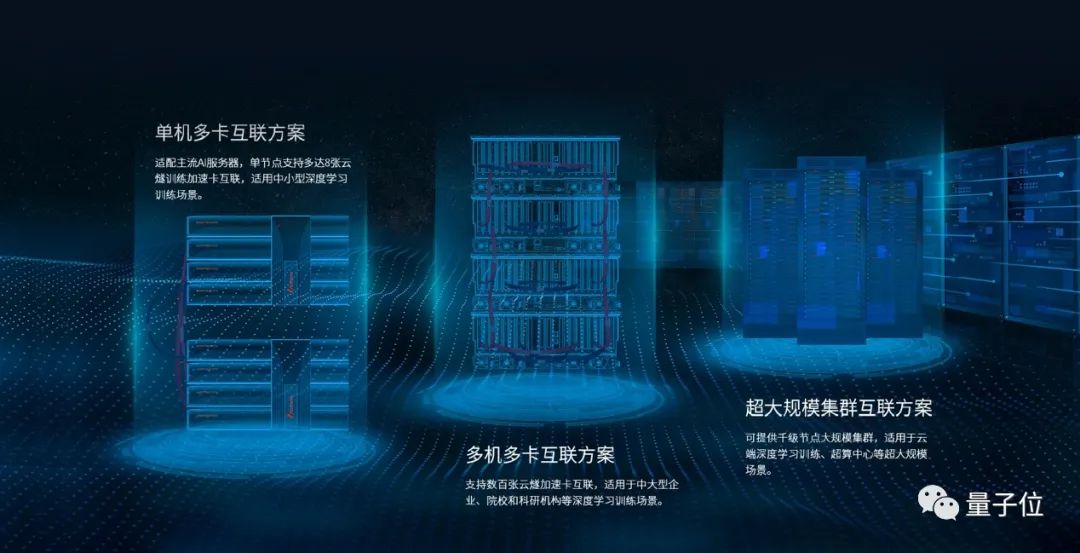 如此一来,不论是面对小型、中型亦或是超大规模的深度学习训练场景,云燧T系列产品都可以做到灵活部署。