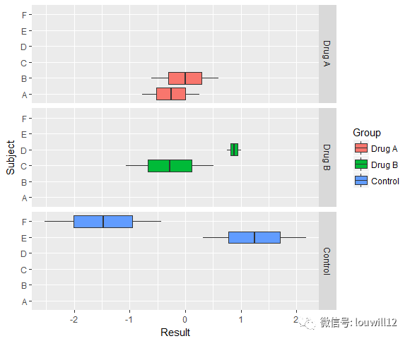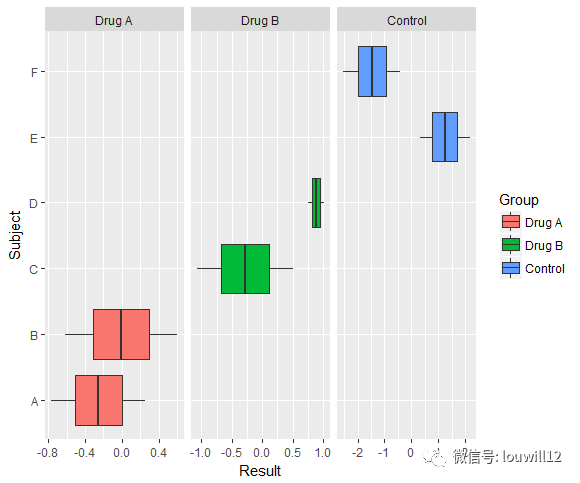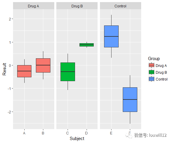 Group = factor(rep(1:3, each = 4), labels = c("Drug A", "Drug B", "Control")),