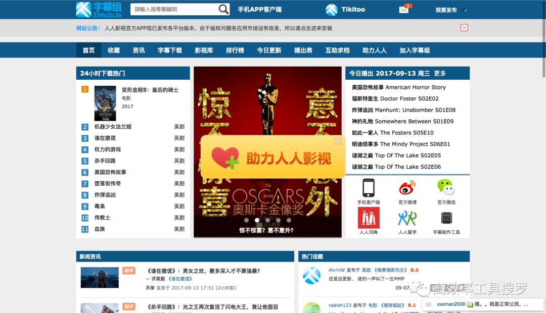 它主要翻译国外的电影的字幕,而且几乎国外已播出,它的字幕就会及时更新。