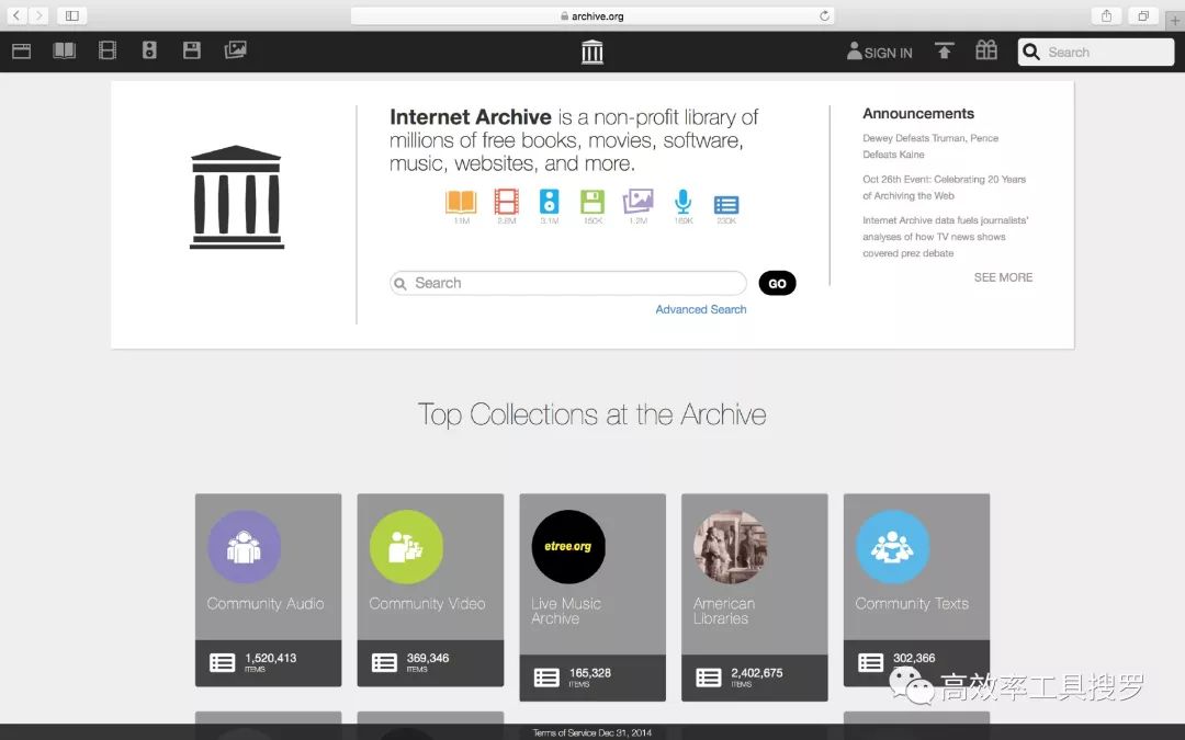 互联网档案馆是一个可以搜索免费图书、电影、软件、音乐、网站的网站,它上面收录了几百万的免费资源,它也是以一个非营利来运营的。你可以根据不同类型的来查找,它的首页也罗列出了很多受欢迎的种类,而且收录了很多历史数据,在搜索结果都会显示它的详细信息。