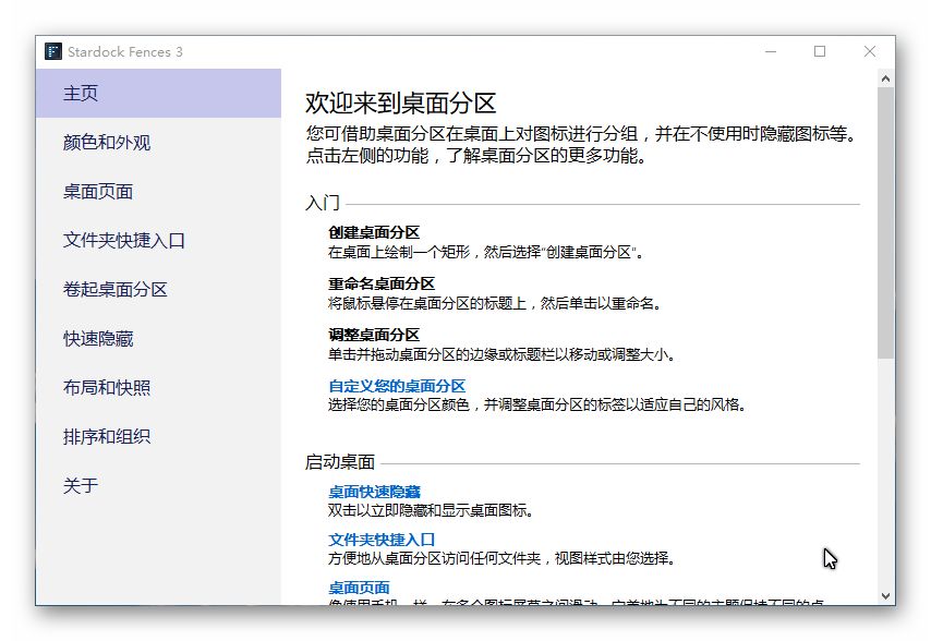 Fences 最基础的功能就是 把桌面分区划分为多个区块进行管理。