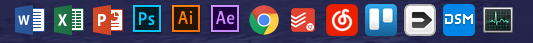 这是我自己电脑的 Dock 栏,我把 Word、Photoshop、Chrome 等常用的软件,Todoist、Trello 等网页版应用,以及一些常用的文件夹放在了这里。