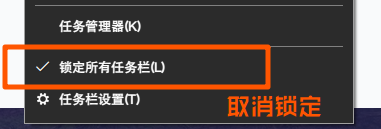 最后重新 锁定所有任务栏,左侧的 || 也会消失。