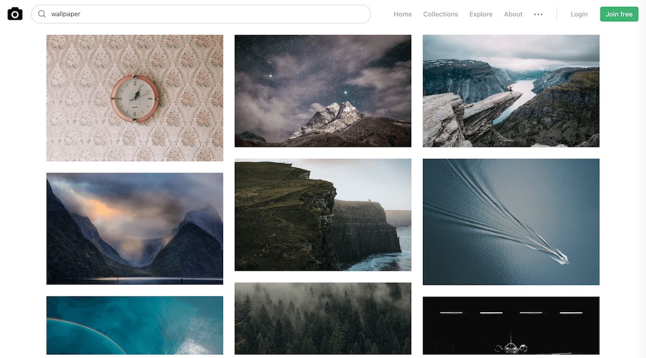 你可能需要换一张干净的桌面壁纸,干净利落的壁纸能让桌面整洁不少。比如在 Unsplash 搜索 Wallpaper 就能找到很多不错的壁纸。