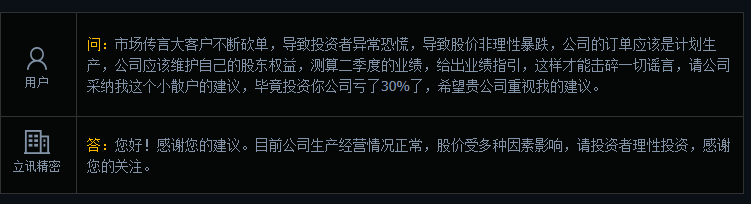 立讯精密回应“大客户不断砍单”:生产经营情况正常