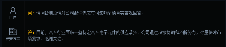 长安汽车:汽车行业面临一些特定汽车电子元件的供应紧张