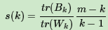 不像监督学习的分类问题和回归问题,无监督聚类没有样本输出,也就没有比较直接的聚类评估方法。但是可以从簇内的稠密程度和簇间的离散程度来评估聚类的效果。常见的方法有轮廓系数Silhouette Coefficient和Calinski-Harabasz Index。个人比较喜欢Calinski-Harabasz Index,这个计算简单直接,得到的Calinski-Harabasz分数值s越大则聚类效果越好。Calinski-Harabasz分数值s的数学计算公式是: