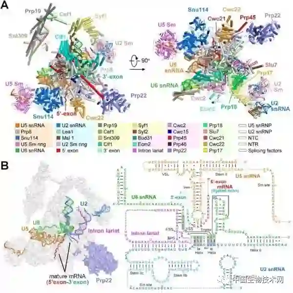 图3 施一公研究组解析的酵母剪接体结构汇总