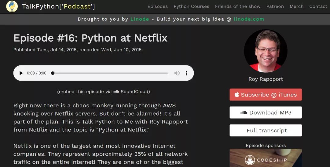 直到发现了 Full Stack Python 网站上的一篇文章,它汇总介绍了一些非常棒的 Python 播客,大部分节目仍在持续更新中。我特翻译出来,分享给大家。