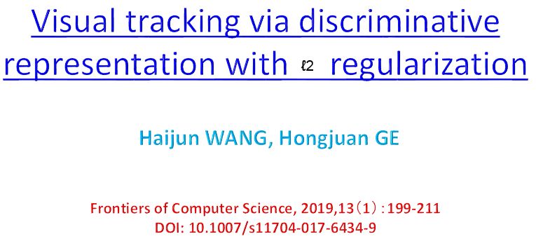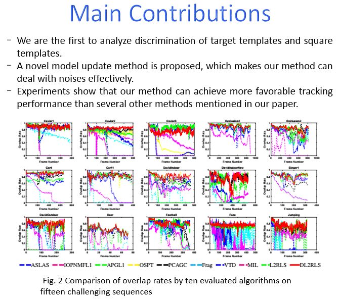 本文提出了一种在贝叶斯框架下基于判别表示的目标跟踪算法。首先,利用HOG特征提取目标模板和候选样本的纹理特征。其次,提出一种新颖的判别模型,并采用ℓ2正则最小均方方法对判别模型进行求解,新模型具有闭合解和非常高的计算效率。最后,引入一种新颖的似然函数和考虑遮挡因素的模型更新机制,以改善跟踪效果。作者对15个具有挑战性的视频,进行跟踪仿真并进行定性和定量评价。实验证明,本文所提算法具有较高的覆盖率和较低的中心点误差。