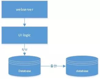 这个时候,我们需要去租借一个主机(比如阿里云的虚拟主机等)。对于网站来说,数据是最为重要的,所以需要有一个备份。但是每天pv肯定不高,所以理论上只需要一个计算机器即可。因此,我们只需要3台机器就能完整一个完整的架构。