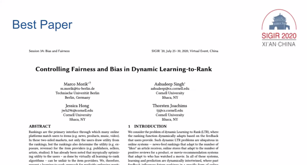 排序算法在很多在线平台将用户和项目(比如新闻产品音乐等)进行匹配,在用户和项目双边考虑中,用户不仅评估排序算法的效益,而且排序算法本身也影响了项目提供端(比如出版商)的效益(比如曝光度)。目前的排序算法中并没有考虑到在项目提供端的效益。基于这些考虑,本文提出了显性的基于组(比如相同出版商出版的文章)的公平排序算法。在保证公平的同时,本文的算法可以有效的优化排序算法的效果。