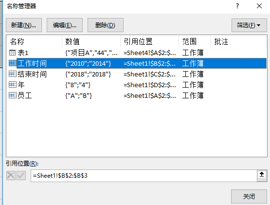 “ Ctrl+F3快捷键 ”打开“名称管理器”,刚刚命名的数据都可以查看了。