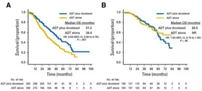 雄激素去势治疗(ADT)虽然对大多数mHSPC患者有效,但疗效的持续时间是可变的,并且所有患者最终都会发展为去势抵抗性前列腺癌(CRPC)。多西他赛是第一个改善mHSPC患者总生存OS的化疗药物,可能是由于早期使用多西他赛治疗可以攻击已经存在的去势抵抗性克隆,因此,用细胞毒性化疗在早期进行干预可能会延缓发展至CRPC的时间。在mHSPC的系统性治疗中,将化疗与ADT联合起来被视为能够延迟CRPC,并成为提高OS和生活质量的潜在治疗手段。CHAARTED研究(多西他赛+ADT vs. ADT)中期结果已经显示了添加多西他赛的获益。本研究进一步报道CHAARTED研究长期随访的结果,并关注不同的肿瘤负荷患者的受益。