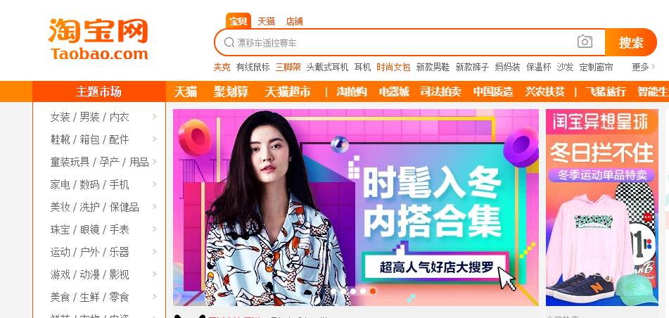 如下图,淘宝网在冬季的推荐: