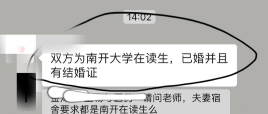 ,校方表示,大家读了研,尤其是开始读博,一般岁数也到了谈婚论嫁的时候了,因此,有时候会产生一些校内夫妻。考虑到这些已婚在校学生需求,学校决定推出“夫妻宿舍”,可以让学生夫妻住在一起方便沟通感情。不过,申请人夫妻必须都是南开大学在籍在校生,申请时需要结婚证和身份证。