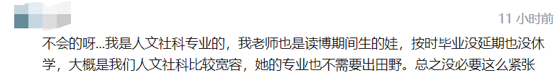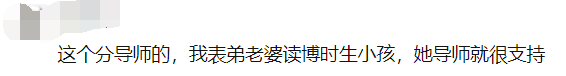 也有人搬出了自己的例子,表示并非所有导师都不支持自己的学生结婚生育,有的导师也很支持学生在适当年纪早点成家的。