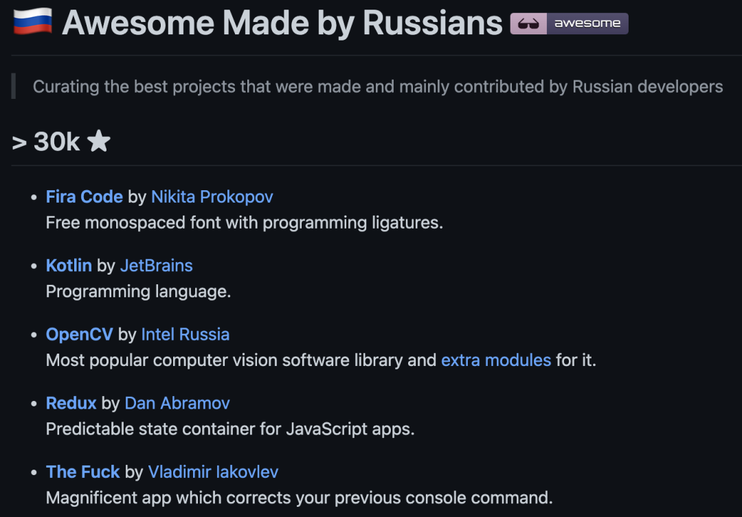 不仅大部分人不知道,而且很多俄罗斯的开发者可能都不知道,这些项目的作者是俄罗斯人。