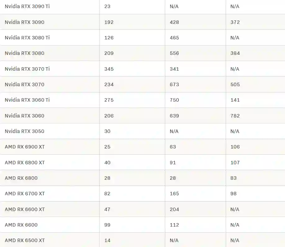 英伟达:3060Ti > 3060 > 3070 > 3050 > 3070Ti > 3080 > 3080Ti > 3090