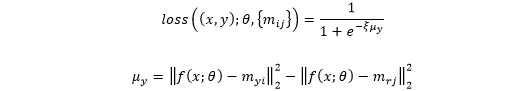 MCL借鉴Hinge Loss的思想,通过添加Margin的方式来使损失的惩罚更严格。MCL不仅要求特征到正确类的距离小于特征到非正确类的距离,还进一步要求两个距离的差值小于一定的数值,从而提高模型在判别时的鲁棒性。MCL的具体定义为: