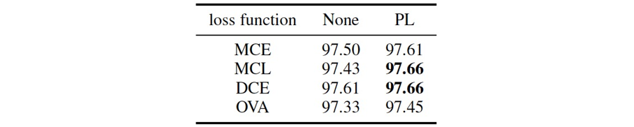 我们在MNIST,CIFAR-10和OLHWDB(3755类)上进行了闭集分类实验,相关结果如下图表所示:
